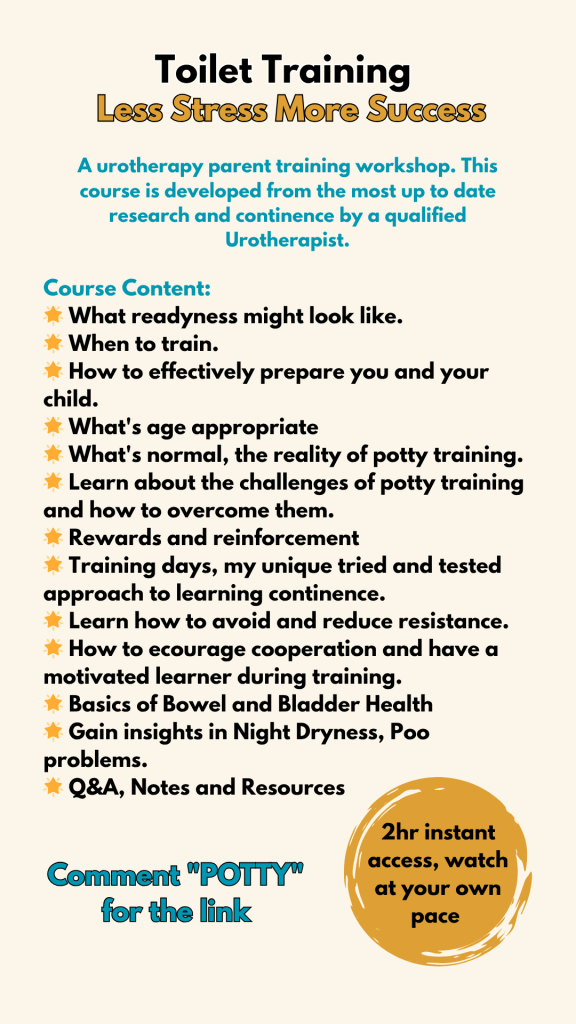 This isn’t just a one-off workshop. You’re joining a supportive space where you can continue learning, ask questions, and feel guided every step of the way. Supporting your child through bladder and bowel challenges can feel overwhelming at times but you don’t have to do it alone.